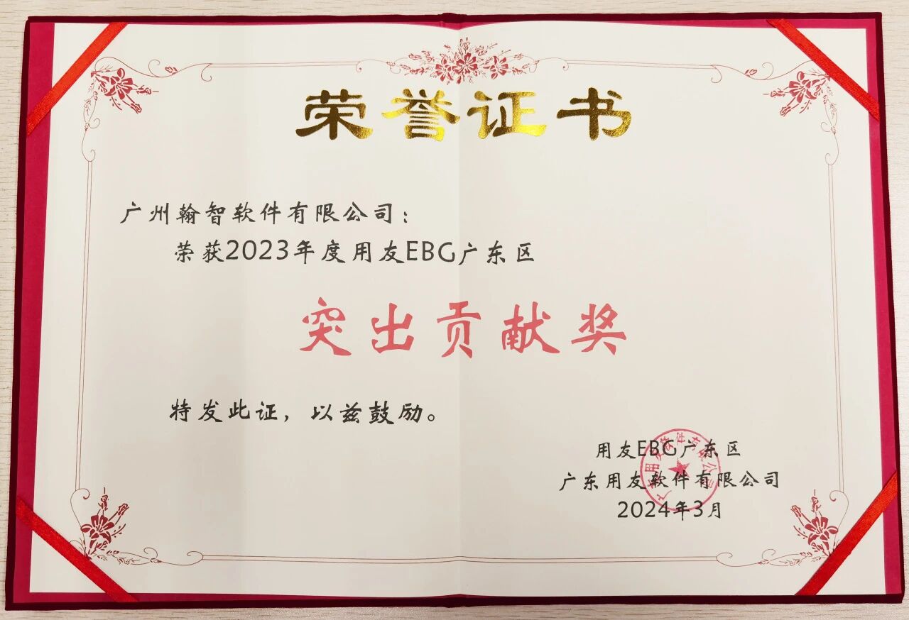 - 用友2024年“高端行业最佳贡献伙伴奖”